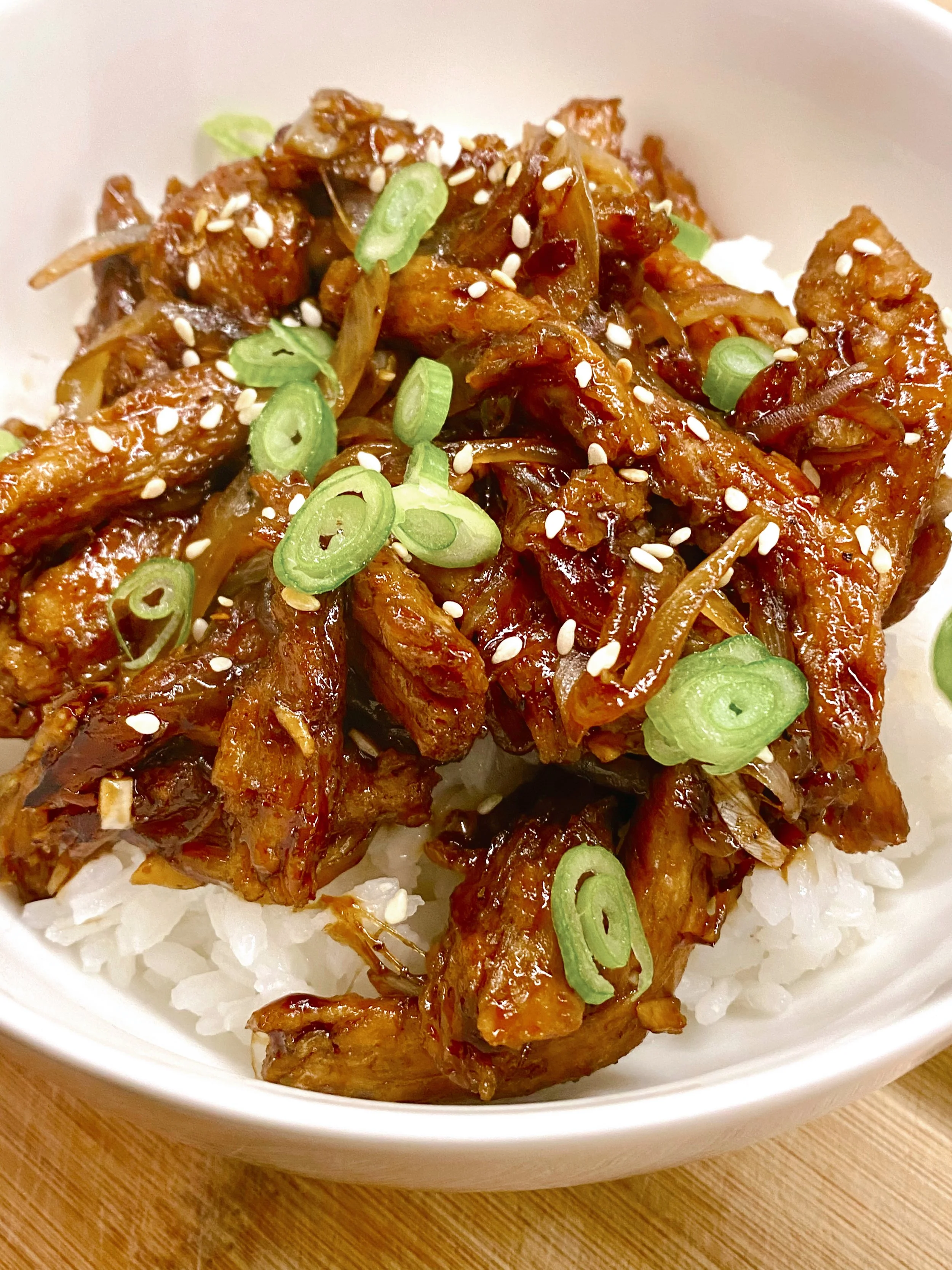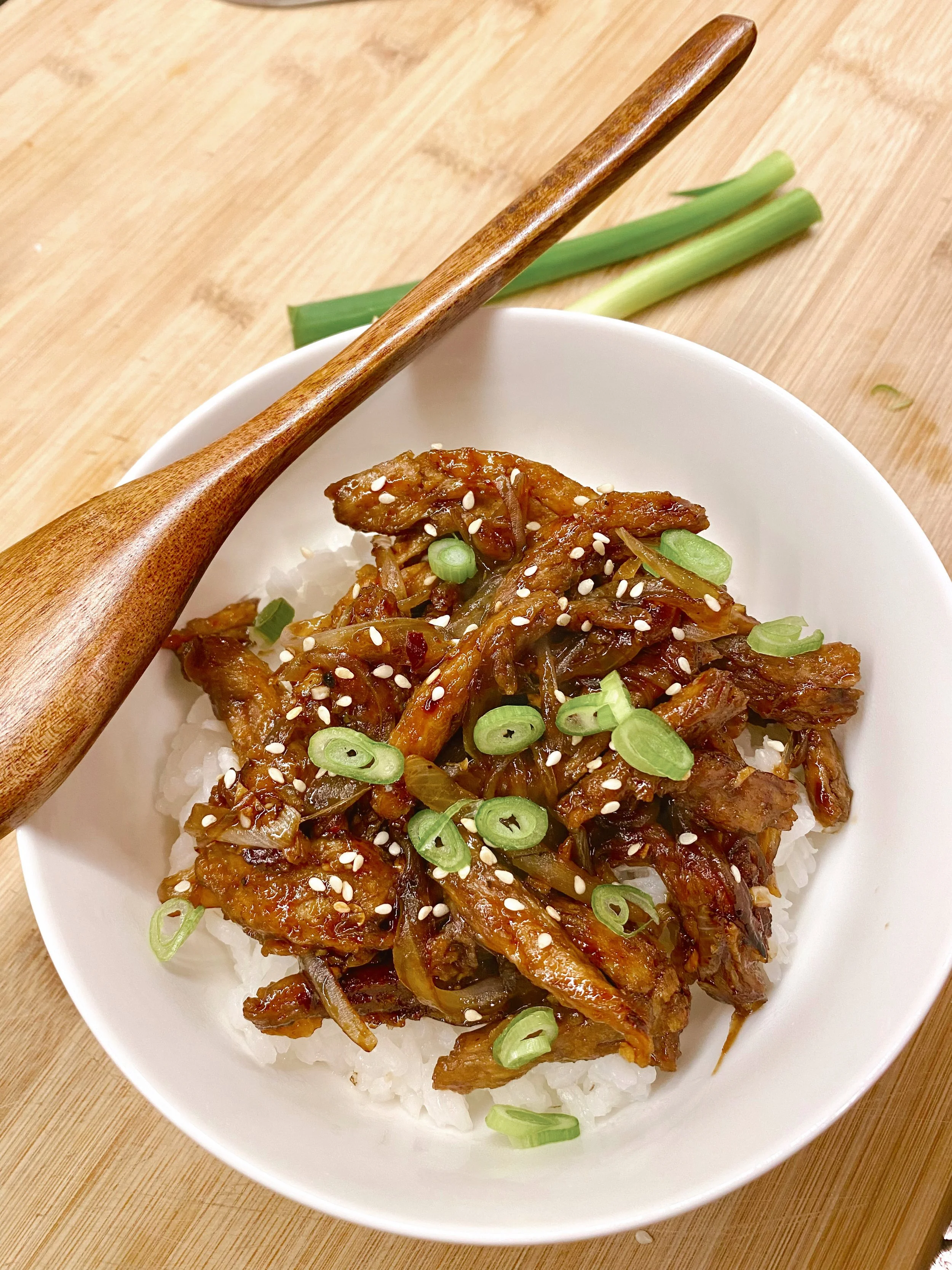 My husband and I were craving Korean BBQ the other night, so I decided to make a vegan version of Bulgogi. Bulgogi, meaning "fire meat", is a stir fry of thin, marinated slices of meat (most commonly beef) grilled on a barbecue, stove-top griddle, or in a pan. I was determined to veganize it and it came out so darn good! Let me know if you come up with a catchy vegan name for Bulgogi.